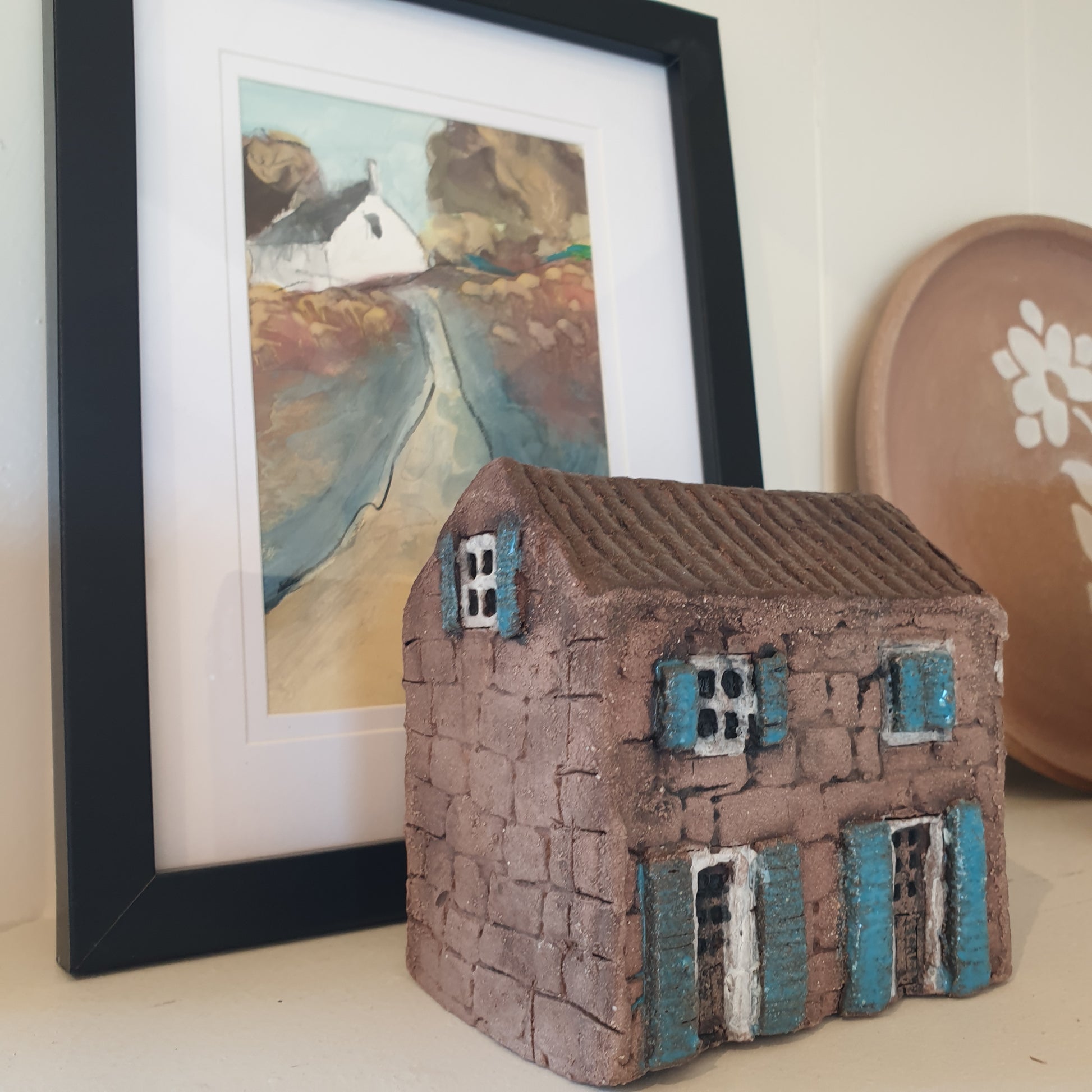 These little villas can be used with fairy lights inside. They are handcrafted from clay with intricate stone walls and other details.