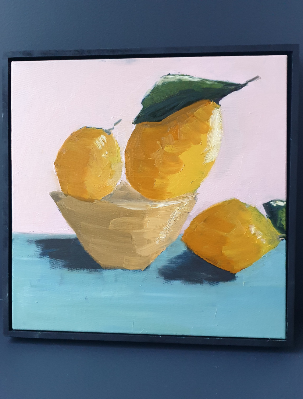 One of my favourites, I love the wonkiness of the lemons and the pink background. The black frame makes it pop.